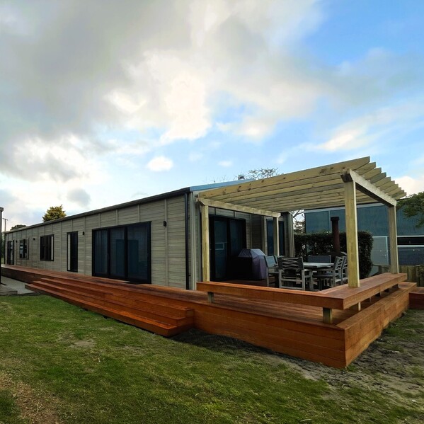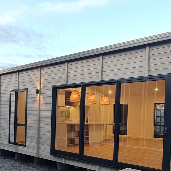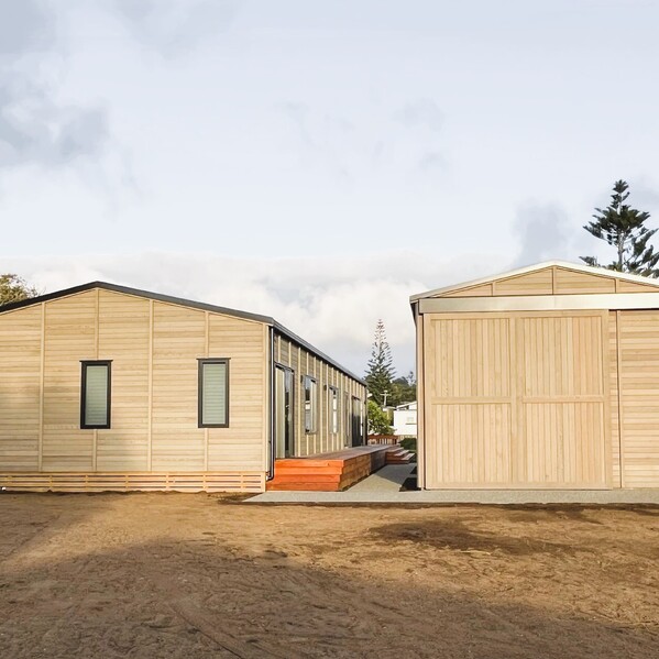 This coastal inspired Elevate Barn145 transportable home is soon to be nestled in the picturesque Cooks Beach. This cedar-clad beauty combines contemporary design with beachy vibes, making it the perfect retreat for coastal living.