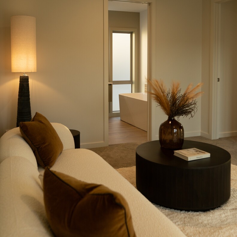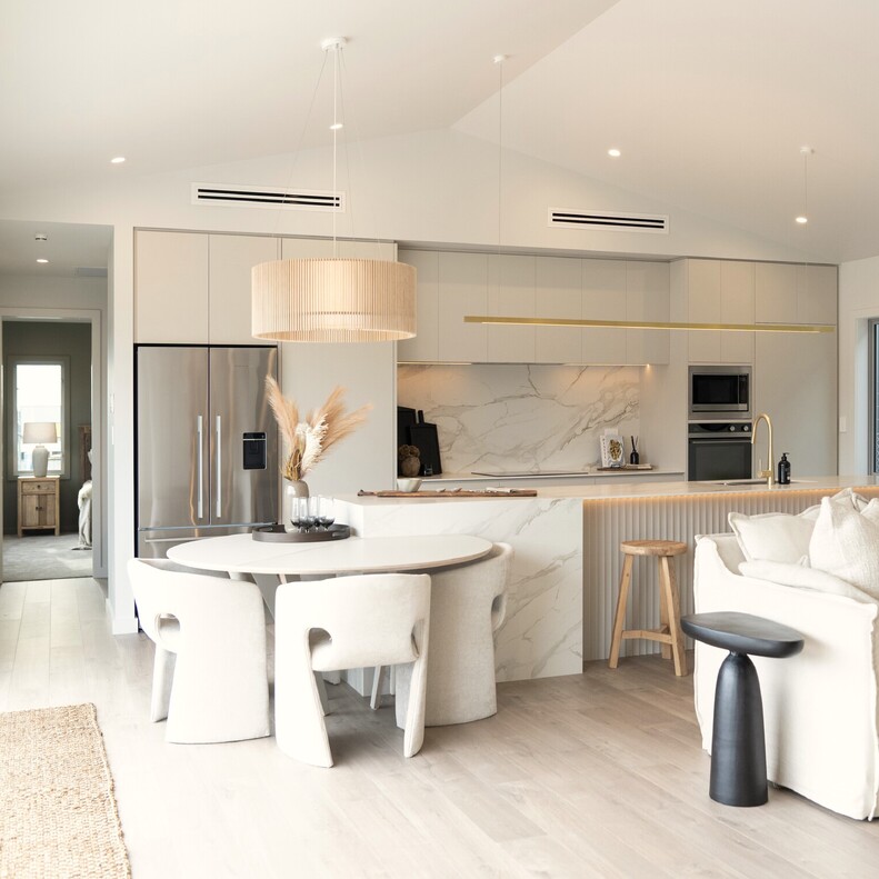 The Elevate Barn 154 show home is based on our NEW 154 model home. It features 3 large bedrooms, 2 luxurious bathrooms, 2 living rooms, a contemporary galley kitchen, an office nook, a separate hidden scullery and laundry with a spacious open-plan design. A host of stylish yet practical features promote family-friendly living, creating a warm, inviting ambience and a serene sense of sophistication throughout.