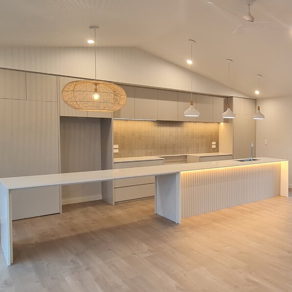 Our in-house architectural team designed the full onsite layout – joining the two homes together with a central courtyard, multi-level connecting decks, a pool, and landscaping to tie everything into the land. Raised on 1.2m piles to sit above the floodplain, the homes have been carefully designed to feel cohesive and grounded, rather than “perched up” – a great example of how transportable homes can be tailored to challenging sites.