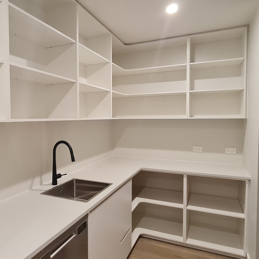Instead of separate scullery and laundry areas, the clients opted for a larger combined space (similar to our Elevate 154 floor plan) with a skylight to brighten the space with natural light.