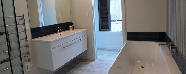 Her new home is exactly as she envisioned - a two bathroom, three bedroom house with a well-equipped kitchen. May-Ana says it's low maintenance, well-constructed, uncomplicated, easy to heat in winter and with wonderful indoor-outdoor flow that works seamlessly with a large group. The building experience she also describes as rewarding, relaxed and speedy! She says, "The home only took 10 months from genesis to completion - the home was designed, constructed, soft furnished, installed with a heat pump, fire place, bedroom heating and entertainment system. It was also transported, piled, and the deck built within that time."