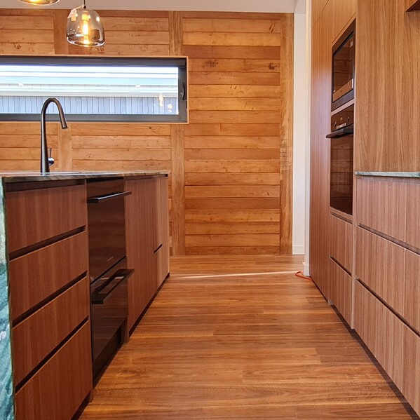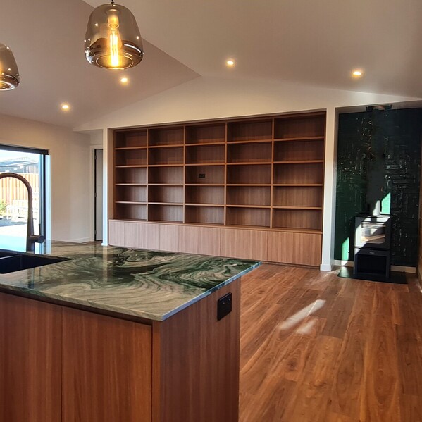 “A HUGE thanks to the entire Elevate team—the whole process has been wonderful, from design selection and site considerations through to having all the special elements of our forever home executed so beautifully—especially our feature wall (thanks to master craftsman John and designer Melissa) and our gorgeous kitchen bench. We are SO excited!”