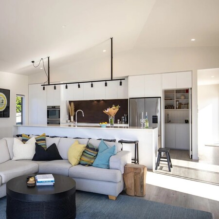 The home has 3 bedrooms, large kitchen with separate scullery, a bathroom, an ensuite, a second separate toilet and laundry. The main, open plan living area features a soaring ceiling with an off-centered ridge that adds loftiness and an architectural feel to this already spacious room.