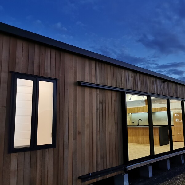 The house is fully clad in band sawn Western Red cedar and stained with clear wood oil so the timber will eventually grey off to a silvery shade for a natural, rustic vibe.