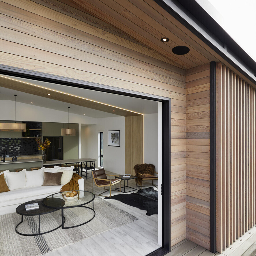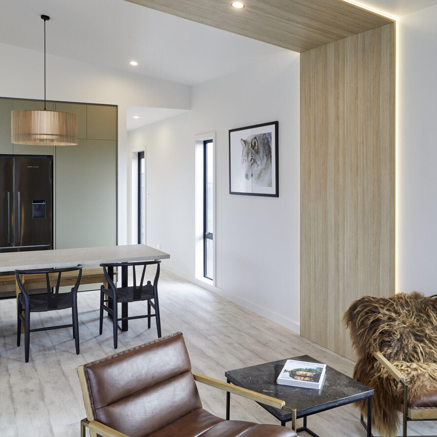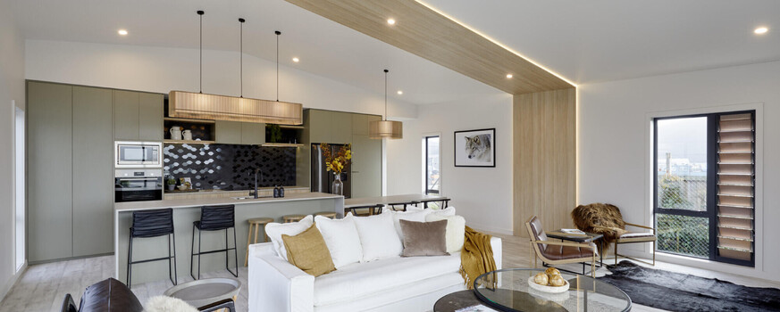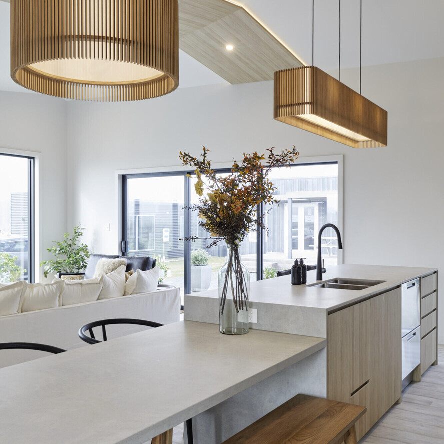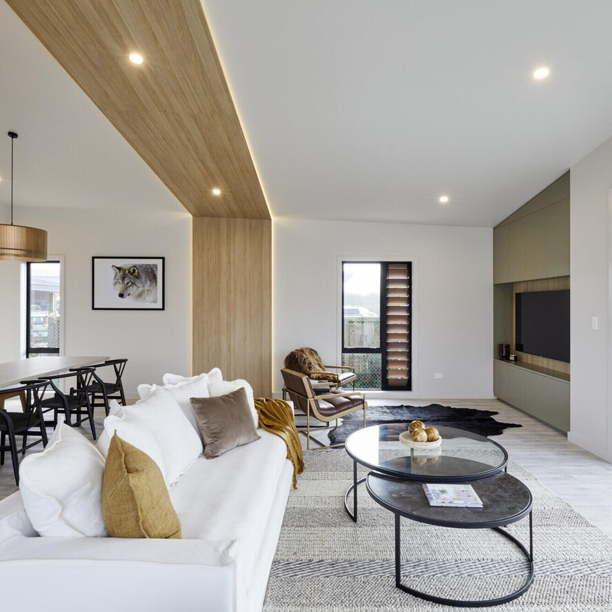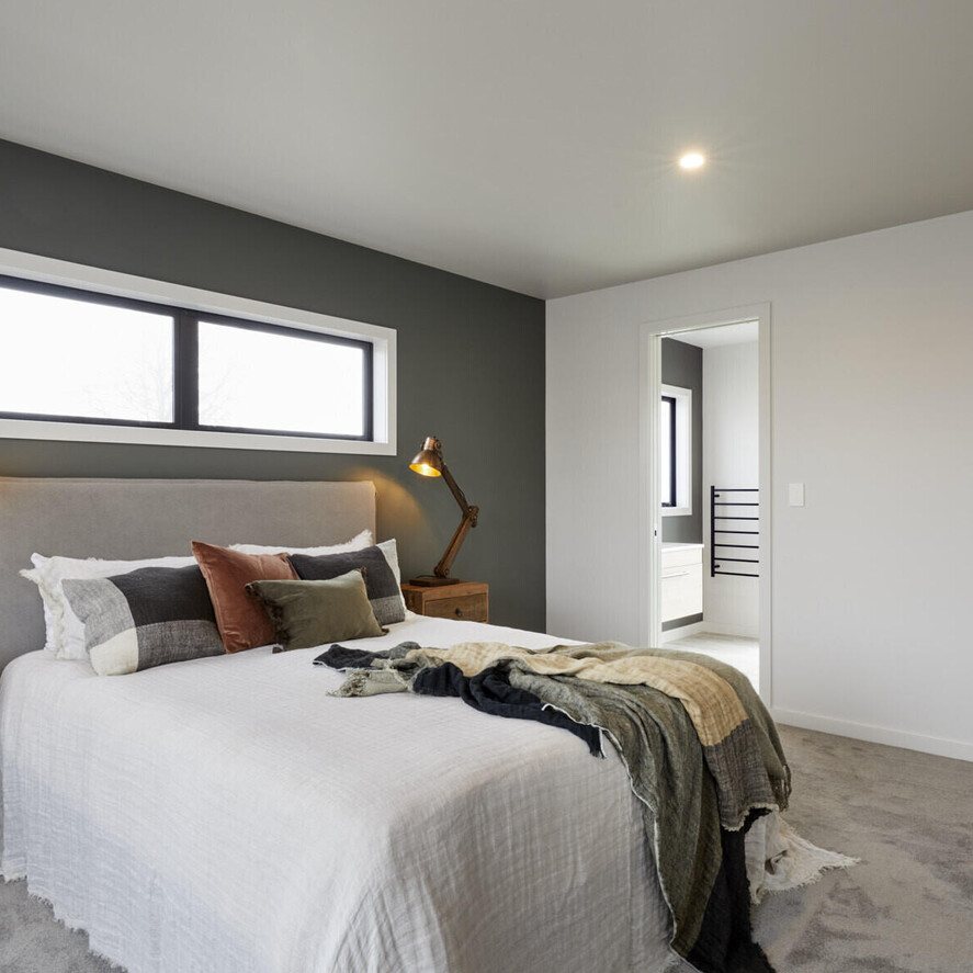 At 145m2 this spacious, well-appointed home has all the features you’ve come to expect in a design and quality-focused Elevate home. The open plan living, and dining area boasts oversized stacker doors on two walls providing all-important indoor/ outdoor flow. The soaring ceiling, in this area, is accentuated by stunning timber paneling with LED strip lighting and the over height ceiling and doors throughout the rest of the home add to the spacious feel of the interiors. Commercial grade laminate flooring is used throughout with premium carpet in the bedrooms to add warmth and elegance, and the enviable ensuite and bathroom are fitted with quality European and NZ engineered bathroom and tapware.