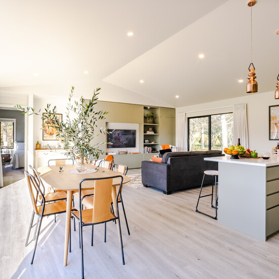 This stunning Elevate Barn 130 home has taken on a new identity as a holiday home, aptly named ‘Oaklee Escape’. Located on a mature rural block, with views across rolling pastures from every window. It’s the perfect spot to base a Wairarapa escape.