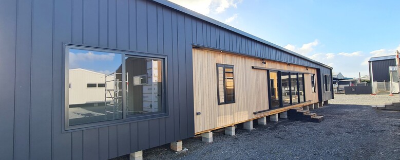 The Tilt 150 is one of Elevate’s most popular home designs, offering a spacious, light-filled layout with a modern edge. This Whangārei-bound build will soon become the permanent home for a family of five, who wanted a house that blends relaxed family living with refined design. The overall aesthetic is a beautifully cohesive mix of rustic character and contemporary charm.